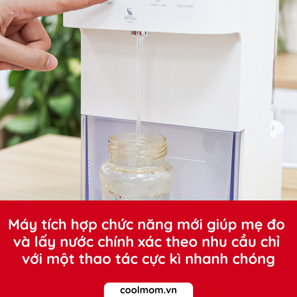 Lựa chọn không thể bỏ qua nếu bố mẹ đang tìm kiếm 1 sản phẩm đun nước pha sữa cho bé yêu nhà mình. Sản phẩm không những đun sôi nước, khử Clo giúp nước tinh khiết hơn mà còn giữ nhiệt độ suốt 24 giờ. Nhờ đó bố mẹ có thể pha sữa cho bé dễ dàng, đảm bảo dinh dưỡng sữa. Máy có thể cài đặt nhiệt độ sữa chính xác, cài đặt lượng nước rót vào bình chính xác mà không cần căn chỉnh. Chính vì vậy, bình thủy điện giữ nhiệt thông minh MB 071 sẽ là top sản phẩm đun nước pha sữa không thể bỏ qua của các bố mẹ bỉm.