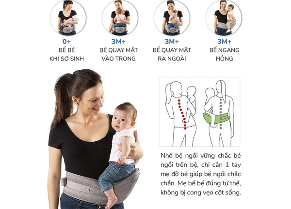 TẤT CẢ các tư thế địu đều đáp ứng tiêu chuẩn địu AN TOÀN cho bé: chân bé khi địu có hình dạng chữ chữ M - hay tư thế chân ếch.