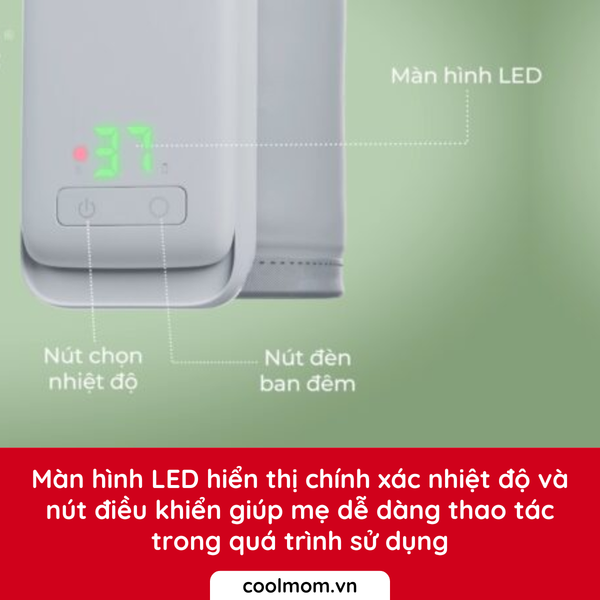 - Nhiệt độ hiển thị là nhiệt độ của sữa bên trong bình. Nhiệt độ của dụng cụ hâm sữa có thể cao hơn.