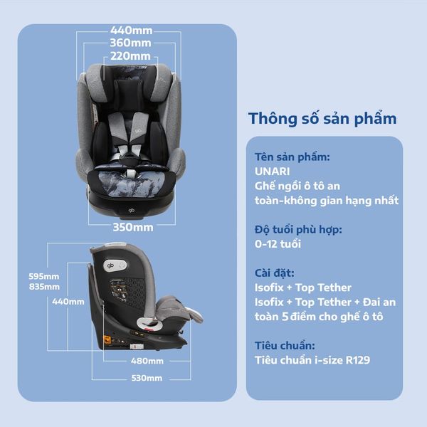 Ghế ngồi ô tô cho bé GB Unari Stage 0+1/2/3 (từ 0-12 tuổi) | coolmom.vn