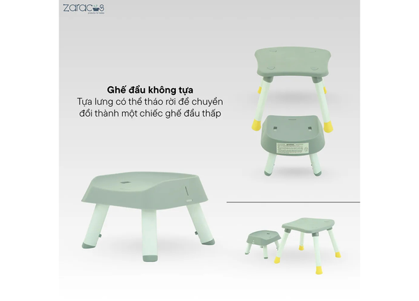 Khi bé lớn hơn, phần tựa lưng có thể tháo rời để chuyển đổi thành một chiếc ghế đẩu thấp – phù hợp cho bé ngồi chơi, thay giày….