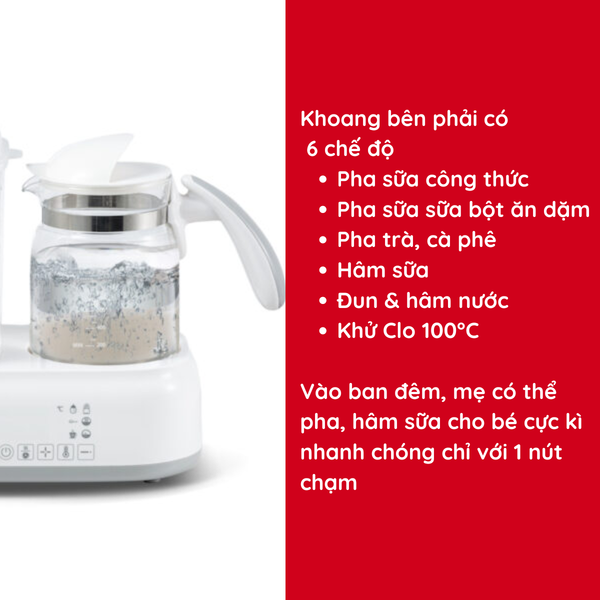 - Chức năng hâm sữa được thực hiện bên máy đun nước nhờ dụng cụ chuyên dụng đi kèm