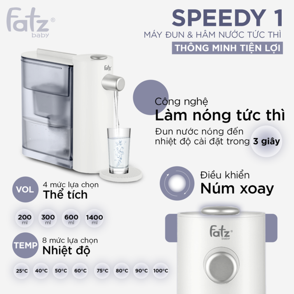 Bạn từng phải chờ đợi mệt mỏi để đun nước cho bình sữa, pha trà, hay pha mì? Với Speedy 1, mọi thao tác trở nên nhanh gọn – chỉ 3 giây là có nước nóng đúng nhiệt độ bạn cần. Sản phẩm là trợ thủ đắc lực cho mọi gia đình, đặc biệt là các bố mẹ bận rộn với em bé nhỏ. Vừa tiết kiệm thời gian, vừa đảm bảo an toàn, Speedy 1 chính là định nghĩa mới của một chiếc máy đun nước hiện đại.