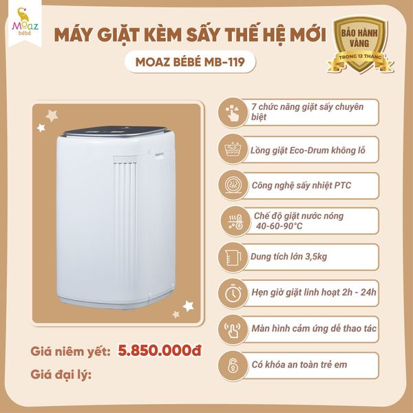 Máy giặt quần áo kèm sấy khô cho bé Moaz BÉBÉ MB-119 | coolmom.vn