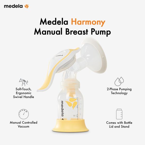 Máy hút sữa Medela Harmony là máy hút sữa dùng tay nhưng lại được ứng dụng công nghệ hút sữa 2 chu kỳ, là một trong những công nghệ tiên tiến có tác dụng tái tạo lại toàn bộ quá trình bú của trẻ sơ sinh. Máy hút sữa bằng tay Harmony khi hút tạo cảm giác rất êm ái, hiệu quả. Các bà mẹ có thể dễ dàng cầm nắm bình khi hút mà không gây mỏi tay đồng thời kiểm soát được hoàn toàn cách hút sữa.