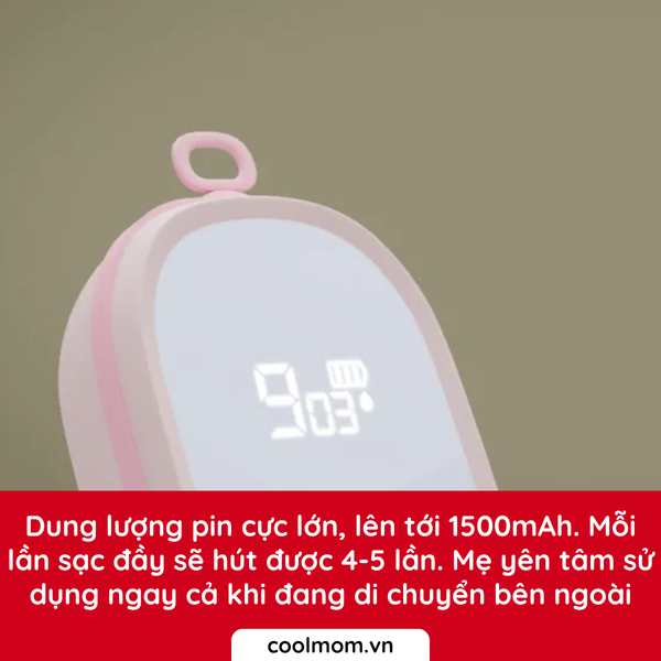 - Lực hút tối đa: 285mmHg; Dung tích pin: 1500mAh.