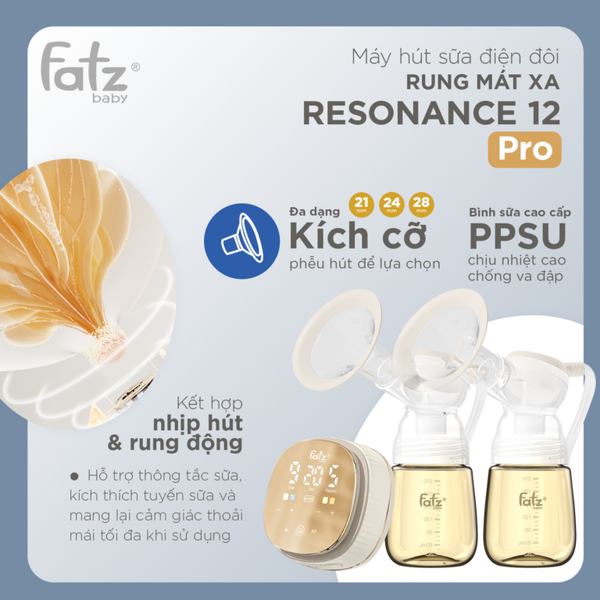 Bạn có biết? Một chiếc máy hút sữa tốt không chỉ giúp mẹ duy trì nguồn sữa dồi dào mà còn giúp hành trình nuôi con trở nên nhẹ nhàng hơn! Và đó chính là lý do Resonance 12 Pro ra đời – một siêu phẩm hút sữa điện đôi kết hợp rung mát xa, tối ưu hiệu quả hút sữa, giảm tắc tuyến sữa, bảo vệ bầu ngực mẹ!