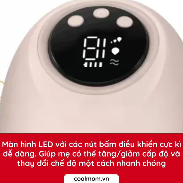 - Hút mạnh và mềm mại với 4 chế độ hoạt động: Chế độ mát xa (5 cấp độ) / Chế độ hút sữa (10 cấp độ) / Chế độ kích thích (10 cấp độ) / Chế độ hút kiệt (10 cấp độ).