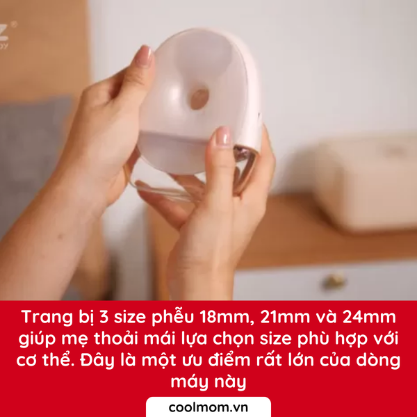 - Phễu nhựa chính băng nhựa tritan 24mm và 2 phễu hạ size đi kèm là 22mm và 18mm, chất liệu silicon to phủ hết cả bề mặt phễu lớn giúp mẹ sử dụng êm ái và thoải mái hơn.
