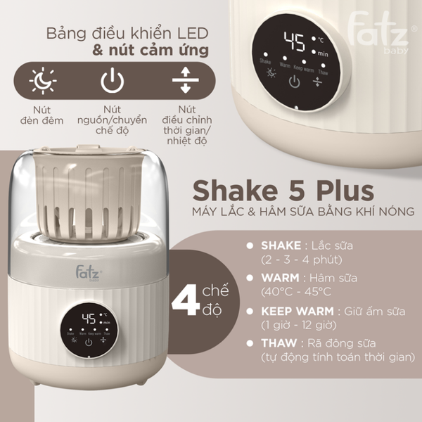 Bạn có biết? Sữa bột không hòa tan đúng cách có thể tạo bọt, gây đầy hơi và khó tiêu cho bé! Việc hâm sữa không đều hoặc quá nhiệt cũng có thể làm mất đi những dưỡng chất quan trọng. Nhưng đừng lo, máy lắc sữa & hâm sữa bằng khí nóng Shake 5 Plus sẽ giúp mẹ chăm bé dễ dàng hơn bao giờ hết!