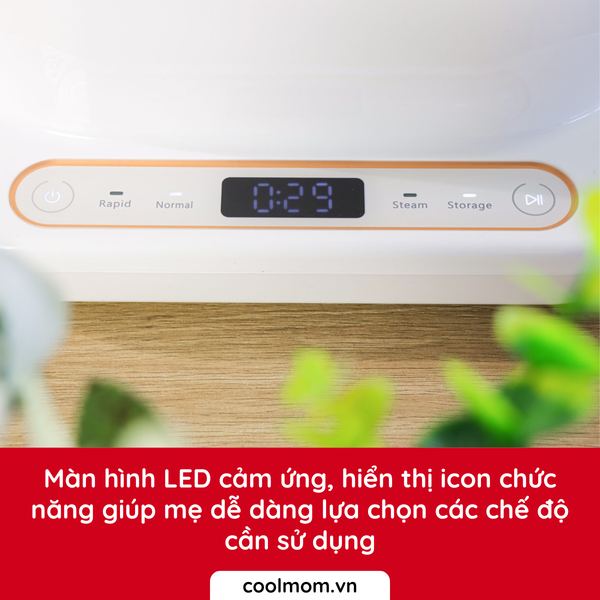 - Chức năng rửa nhanh và rửa bình thường có tích hợp sấy khô bình sữa