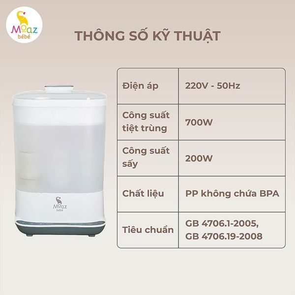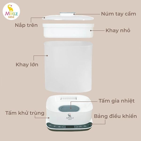 Sản phẩm máy tiệt trùng hơi nước sấy khô Moaz BéBé MB101 có công dụng loại bỏ những vi khuẩn bám trong từng ngóc ngách khuất khó vệ sinh của bình sữa. Đồng thời sấy khô bình sữa sau khi được tiệt trùng bằng hơi nước, để đem lại những chiếc bình khô ráo và sạch sẽ nhất.