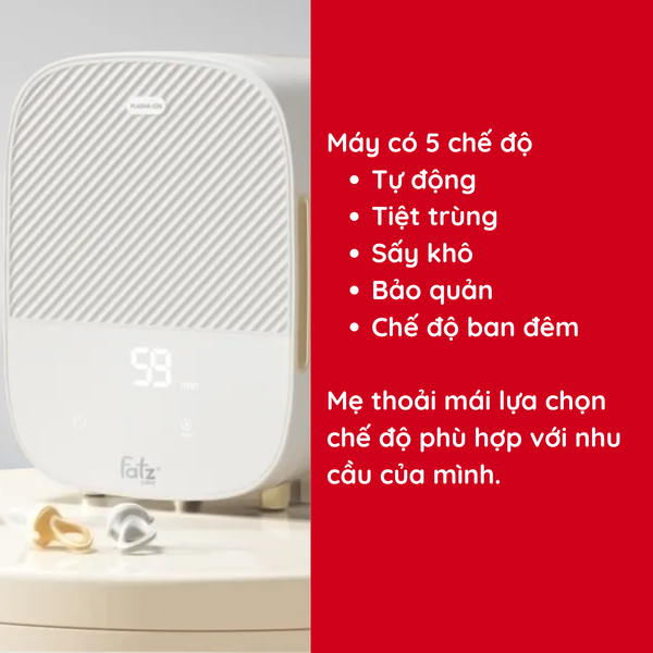 Chức năng | Tự động - Tiệt trùng - Sấy khô - Bảo quản - Chế độ ban đêm |