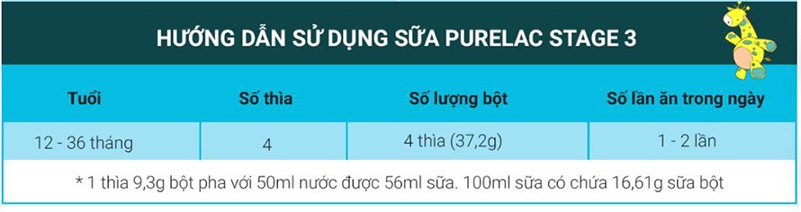 - Tỷ lệ đạm Whey : Casein trong PureLac số 3 là 6:4 (trẻ từ 12-36 tháng), giúp trẻ hấp thu và tiêu hóa tốt.