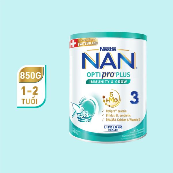 Sữa bột Nestlé NAN OPTIPRO PLUS 3 850g là một trong những loại sữa bột cho bé tốt nhất được khách hàng Việt Nam ưa chuộng.