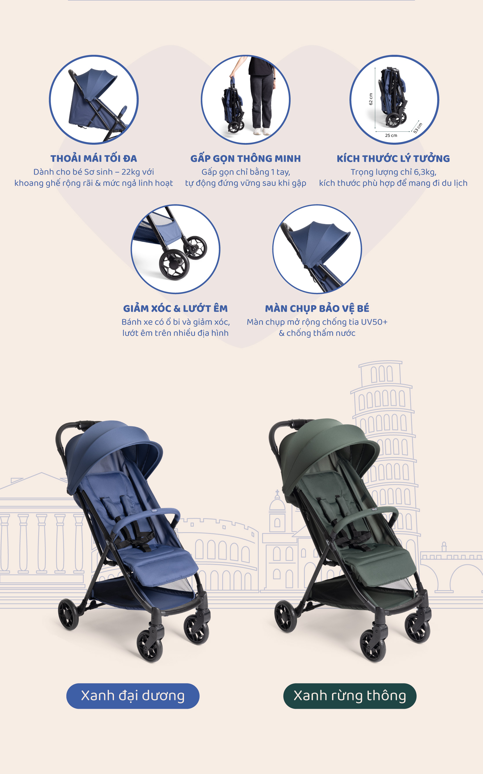 Tuổi sử dụng: dành cho bé từ sơ sinh đến 22kg