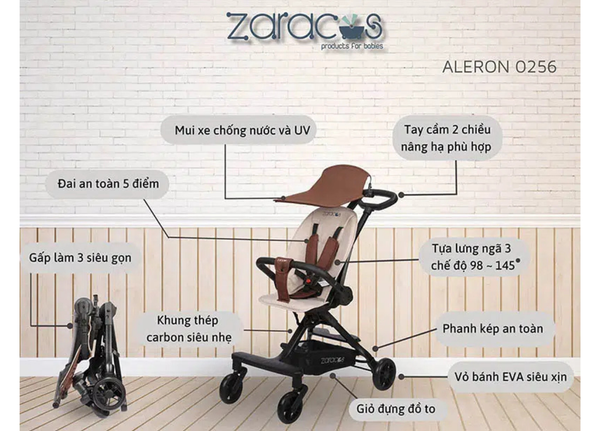 Xe đẩy 2 chiều Zaracos Aleron 0256 mang đến nhiều ưu điểm thiết thực để chăm sóc bé yêu một cách tốt nhất: