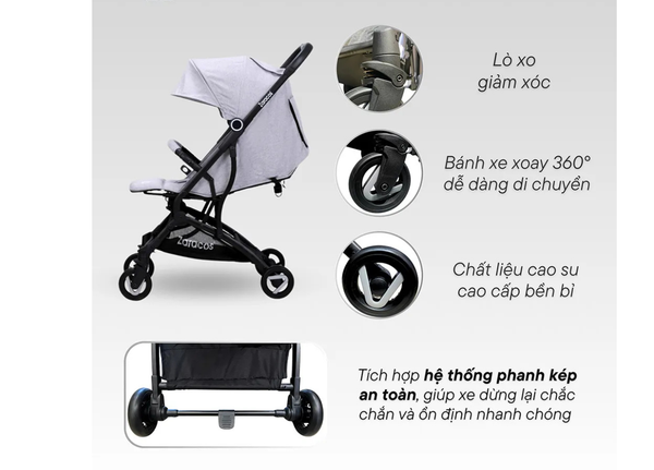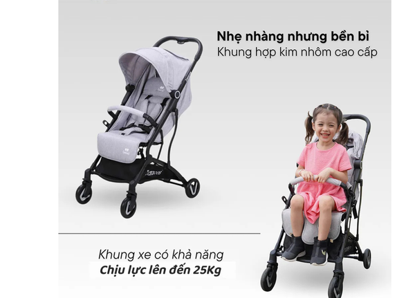 Khung xe có khả năng chịu lực lên đến 25kg, đảm bảo an toàn và ổn định cho bé trong suốt quá trình sử dụng. Lý tưởng cho ba mẹ đang tìm kiếm một chiếc xe đẩy gọn nhẹ, vừa chắc chắn để đồng hành cùng bé yêu mỗi ngày.
