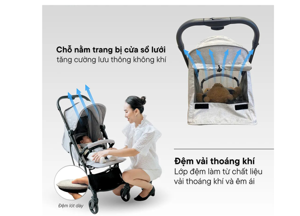 Trang bị lớp đệm làm từ chất liệu vải thoáng khí, giúp ngăn tình trạng bí hơi và giữ cho bé luôn khô thoáng, dễ chịu, đặc biệt phù hợp với thời tiết nóng ẩm.